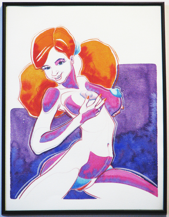 She wants you! And now you can have her. "Pony Tails" is the title of this Erotic Pop Art Pinup, 12" x 16" Watercolor on 140 Lb Acid free paper, with Frame – On Sale Now for $200.00.